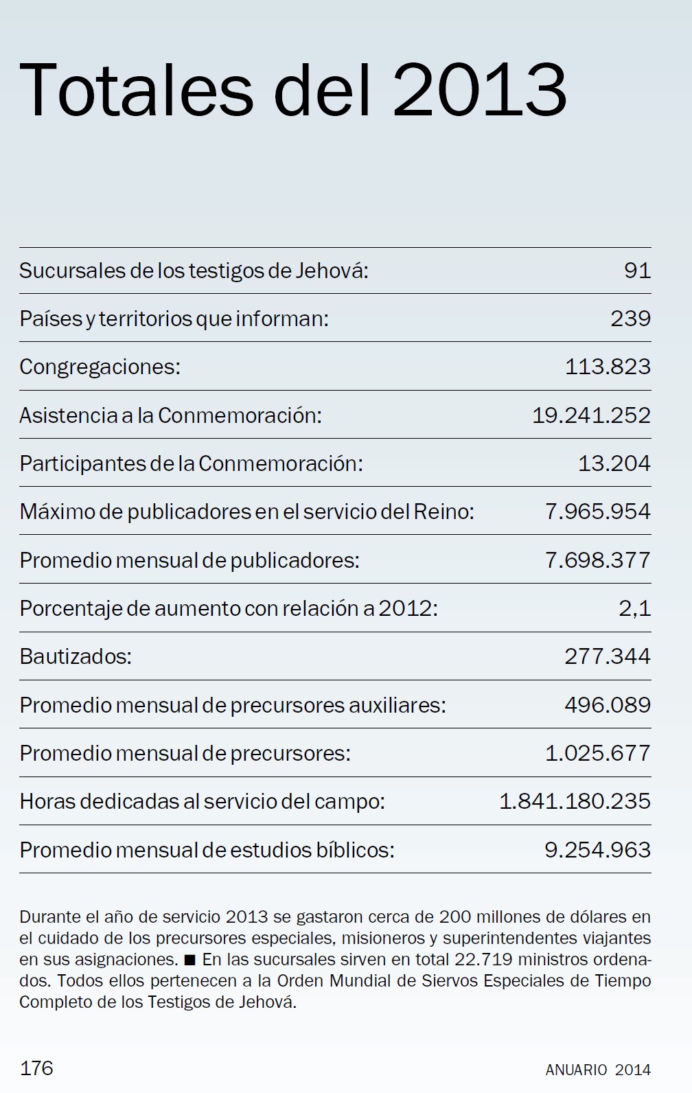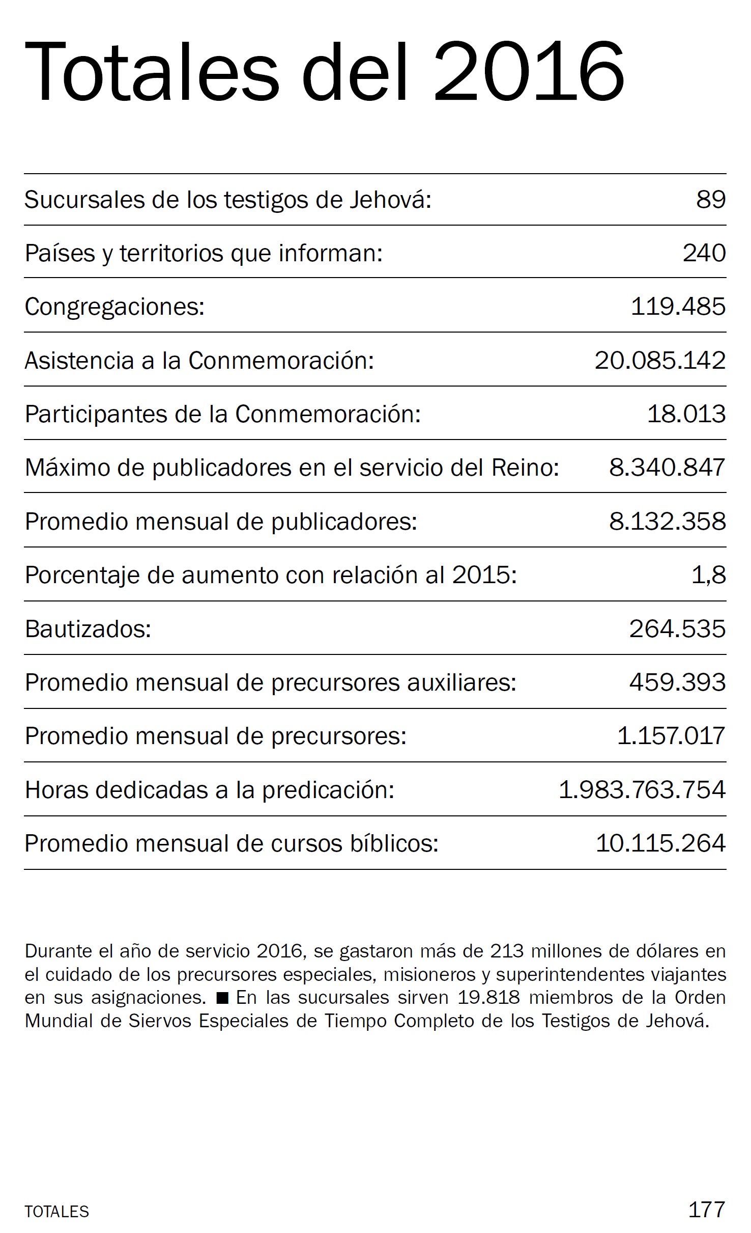Las Estadísticas de los Testigos de Jehová