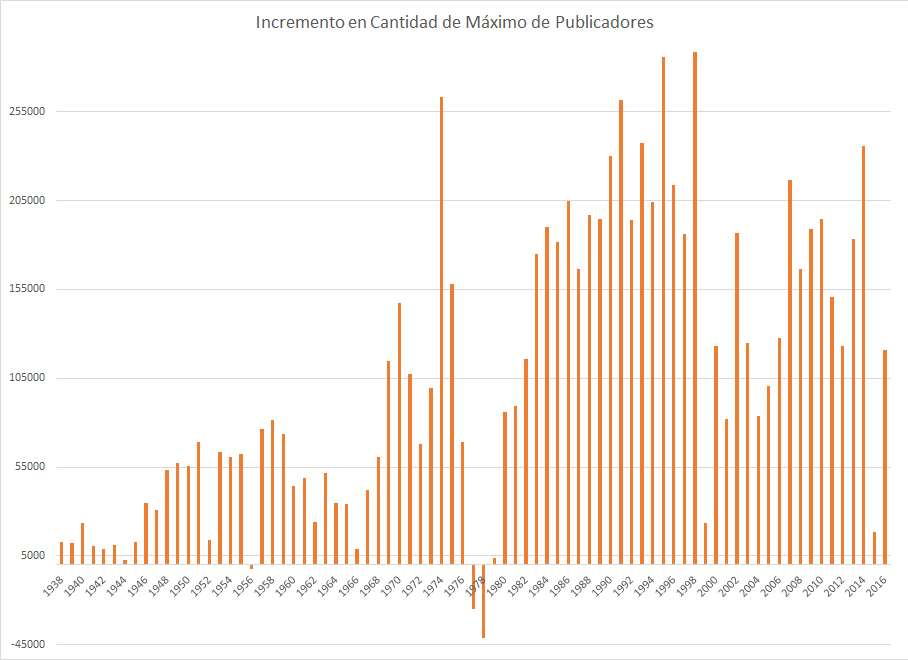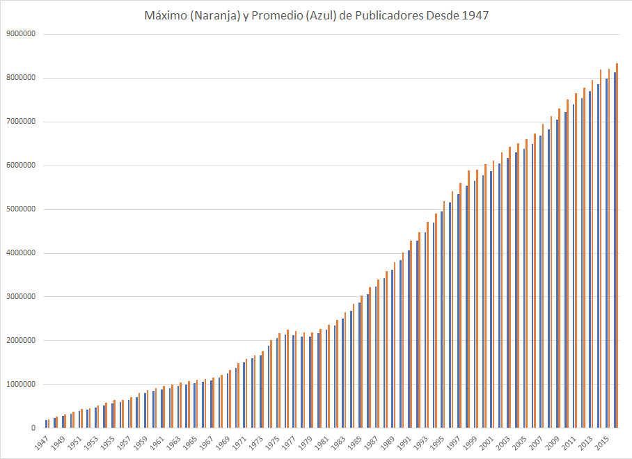 Generalmente se ha usado el promedio de los publicadores en vez del máximo de publicadores, puesto que el número de publicadores máximo es un número inexacto debido a la manera que la Watchtower colecciona estos datos. Por ejemplo, si a un publicador se le olvida reportar en enero y envía sus reportes de enero y febrero al fin de febrero, el reporte de enero no se ajusta. Ambos reportes se añaden al total de febrero, lo que genera un máximo artificial.