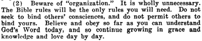 El asumir que Dios necesita una organización terrestre muestra una falta de fe en su habilidad de tratar con individuos. Los primeros cristianos no fueron dirigidos por una organización, sino por las palabras de Jesús y la guía del Espíritu Santo.